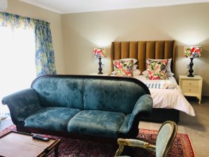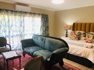 These spacious ground floor rooms have two single beds, prepared as either a king sized bed or separated (please let us know in advance), an en suite bathroom with bath and shower, and a cosy seating area. The rooms also boast a 40 inch Smart TV with Netflix, ShowMax and YouTube. Room 12 is currently open for bookings, while Room 11 is set to follow late 2025. These rooms also have the standard Bluetooth enabled fan with built-in speaker.