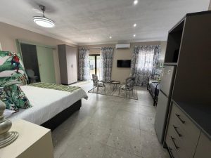 The Family Room with Patio sleeps up to 4 guests. The room has two single beds as well as a pull out sofa bed. The bed will be prepared by housekeeping at your request. The bathroom is shared by all occupants of the room.