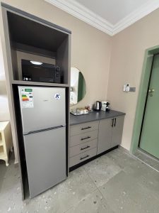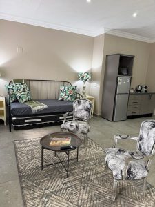 Grafiti is not a self-catering venue and we kindly request that guests do not bring food with them, however this unit does have a kitchenette with microwave and large fridge. Do note that there are no cutlery or crockery and no cooking facilities are available. There are no braai facilities available. You are however welcome to bring along snacks such as crisps, sweets or biscuits to enjoy in the comfort of your room.